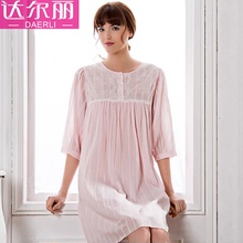 达尔丽2017夏季新品家居服女士七分袖绣花纯棉睡衣睡裙T876106
