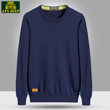 AFS JEEP秋冬男士针织衫套头圆领毛衣薄款打底衫百搭纯棉纯色线衣