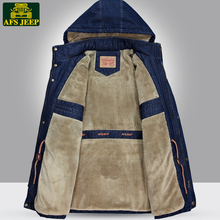 AFS JEEP中长款牛仔棉衣男加绒加厚外套夹克青年大码棉服保暖棉袄