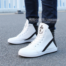 春季英伦黑白色皮靴高筒高帮靴子男士圆头长筒靴男靴韩版潮流青年