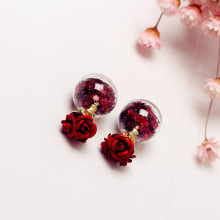 包邮 特价 韩国日韩版新款气泡玫瑰花星星耳钉个性女耳环饰品红色