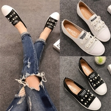 2017春季新款百搭舒适学生鞋平底透气女鞋单鞋圆头魔术贴小白鞋女
