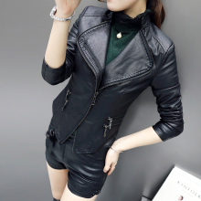 2017春秋新款时尚机车PU小皮衣女短款韩版修身立领皮夹克皮外套潮