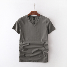 2017春夏新款英伦风个性纽扣V领短袖T恤男纯色棉半袖简约打底体恤