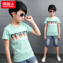 南极人童装儿童夏季短袖两件套中大童牛仔韩版套装男童夏装2017款
