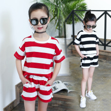 童装女童夏装2017新款条纹套装休闲短裤儿童两件套
