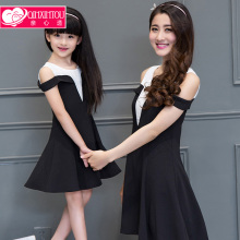时尚亲子装夏装裙子2017新款母女装连衣裙夏季露肩撞色公主裙修身