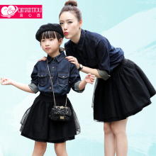 时尚亲子装秋装套装春秋牛仔网纱短裙两件套母女装秋季2016款新潮