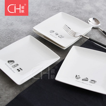瓷航正方吉祥平板方形平盘蛋糕盘咖啡西餐厅摆盘寿司盘陶瓷