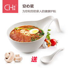 大气骨瓷陶瓷手柄大面碗创意个性泡面碗手把碗赠送大勺1050ml