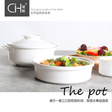 瓷航陶瓷汤锅双层卡通骨瓷汤碗餐具套装纯白圆盘子汤盘带盖双耳