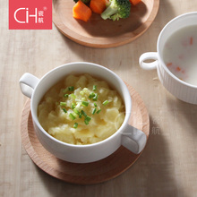 瓷航双耳汤碗陶瓷汤盅蒸蛋碗创意汤杯儿童早餐杯沙拉布丁甜品碗