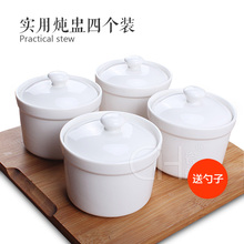 瓷航燕窝盅陶瓷隔水汤盅套装带盖甜品蒸蛋炖盅煲汤骨瓷纯白4个装
