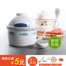 瓷航微波炉适用瓷碗陶瓷泡面碗带盖汤碗勺筷大号碗杯套装日式餐具