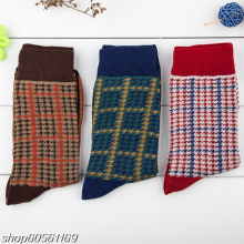 英伦复古袜子男士纯棉中筒袜潮流男式长筒棉袜千鸟格男袜秋冬长袜