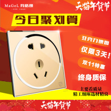 玛格朗开关插座面板香槟金拉丝一开 5五孔二三插86型墙壁家用开关