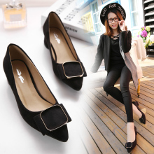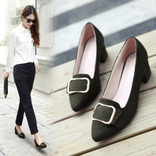单鞋女2017春季新款百搭韩版职业中跟鞋尖头浅口方扣粗跟高跟女鞋