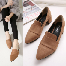 2017新春秋季深口尖头韩版女鞋冬款式粗跟高跟单鞋婚鞋女鞋工作鞋