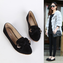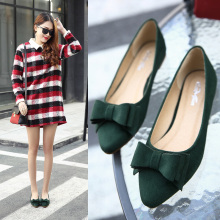 2017夏季新款女鞋尖头浅口平跟平底蝴蝶结大码黑色职业工作女单鞋