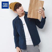 唐狮韩版2016秋装新款男波点印花尖领修身休闲都市长袖衬衫潮特价