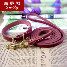 两色可选进口软牛皮中小型犬牵引绳项圈套装 泰迪贵宾狗链金色扣