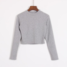 韩版棉质纯色弹性圆领打底衫长袖t恤女秋短款修身显瘦紧身上衣潮