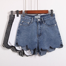 波浪边花边下摆白色中腰牛仔短裤女夏季宽松阔腿裤a字裤热裤显瘦