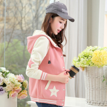 2017少女外套春装新款学院风连帽修身少女初中学生开衫卫衣外套女