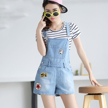 少女夏装裤子新款韩版修身显瘦青少年初高中学生牛仔背带裤女短裤