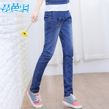 琵琶羽中学生春装新款韩版松紧腰修身少女初中生牛仔裤女休闲裤子