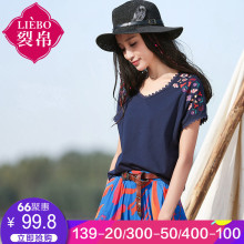裂帛旗舰店女装2017夏装新款文艺圆领短袖T恤女宽松体恤大码上衣