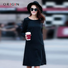 ORIGIN/安瑞井2016秋冬新品原创中长款棉长袖纯色气质修身连衣裙