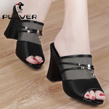Plover夏季室外一字拖鞋女2017夏时尚外穿高跟凉拖女鞋韩版凉鞋子