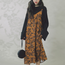 韩版2017春装新款加肥加大码女装胖mm大吊带裙印花时尚连衣裙长裙