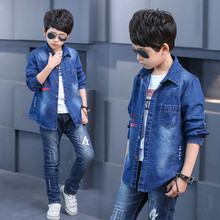 中大童男装10夏装12男童长袖牛仔衬衣13儿童衬衫15岁青少年男孩16