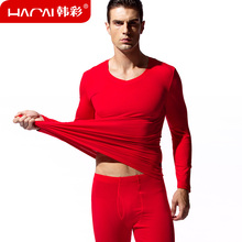 韩彩莫代尔男士保暖内衣套装本命年大红色紧身内衣秋衣秋裤薄款