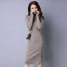 开叉高领毛衣裙女秋冬款中长款针织衫套头过膝秋款连衣裙长袖长衫