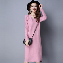 低领毛衣女秋冬宽松简约秋款针织连衣裙长袖长款套头长过膝打底潮