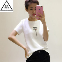 OK家2017春夏新款卡通印花圆领宽松学生打底套头短袖上衣T恤女潮