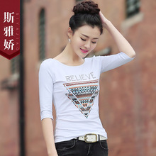 斯雅娇2017夏新款女装五分中袖半袖t恤女款修身大码上衣体恤棉