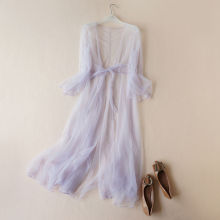 2017夏季新款女装甜美超仙女时尚长袖系带透明纱长款披肩防晒外套