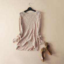 2016秋季女装甜美森女时尚圆领长袖菱形镂空套头宽松毛衣针织衫