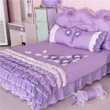 婚庆韩式公主风床上四件套蕾丝花边全棉紫色床裙式纯棉1.8m床被套