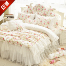 韩版全棉公主风蕾丝花边四件套床裙式婚庆床上用品奶白色碎花被套