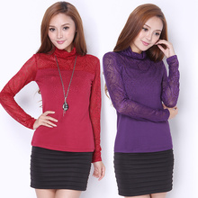 爱买包邮2016春装蕾丝打底衫莫代尔性感显瘦T恤高领修身长袖女