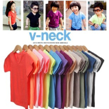 2017夏装童装宝宝糖果V圆领纯棉短袖t恤男女中小童儿童t恤衫