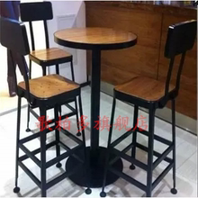美式星巴克餐桌铁艺实木吧台椅凳高脚椅酒吧凳餐桌椅会议桌椅组合