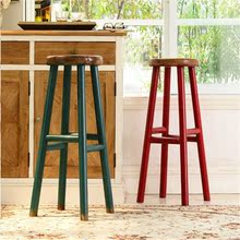 美式乡村实木复古吧台椅餐厅酒吧凳高脚凳子餐椅休闲吧椅子彩色