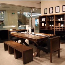 美式乡村茶几实木客厅创意设计原木茶几简约工作室会客茶台茶桌子