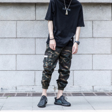 原创潮牌工装裤 余文乐迷彩束脚裤 口袋休闲裤缩腿裤小脚裤男包邮